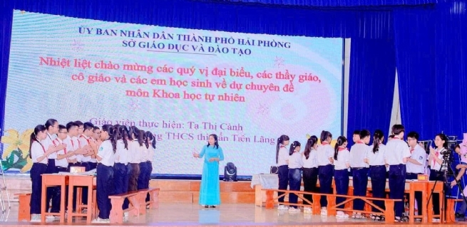 Giáo viên Trường THCS thị trấn Tiên Lãng trình bày nội dung trong chuyên đề môn Khoa học tự nhiên