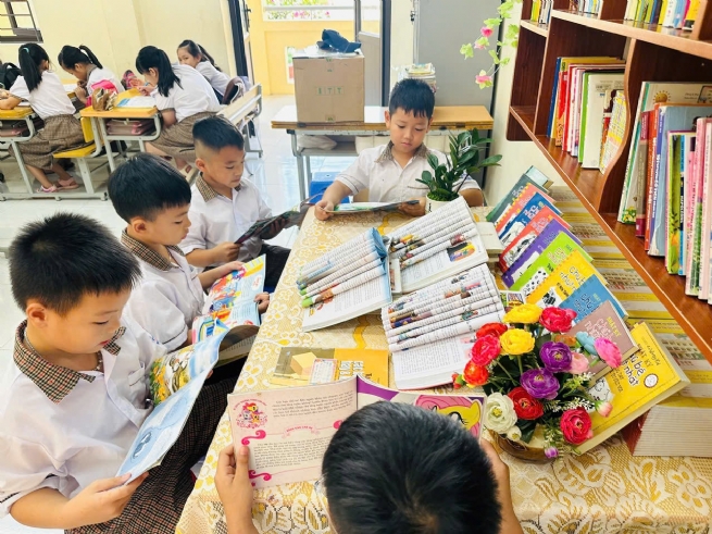 Tiết học tập, đọc sách tại Thư viện - Trường Tiểu học thị trấn Tiên Lãng.