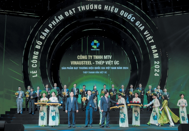 Đại diện lãnh đạo Công ty Vinausteel nhận giải Thương hiệu Quốc gia Việt Nam năm 2024