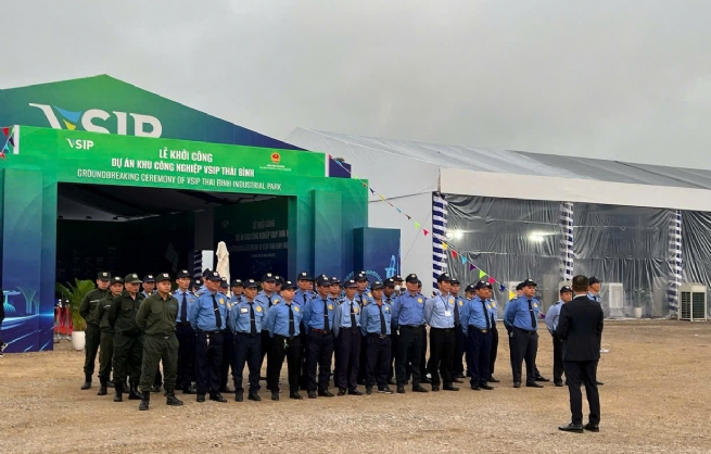 Nhân viên Công ty TNHH Dịch vụ Bảo vệ Hồng Hải tác nghiệp tại KCN VSIP Thái Bình