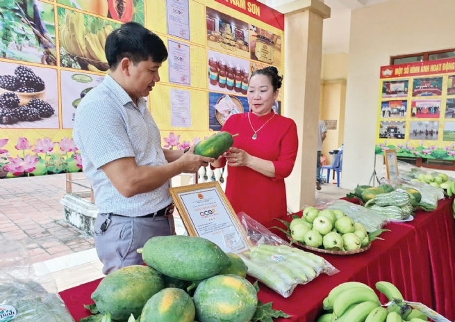 Xã Nam Sơn còn có nhiều sản phẩm OCOP khác. Anh Nguyễn Văn Việt, Giám đốc Hợp tác xã Dịch vụ nông nghiệp và kinh doanh tổng hợp Nam Sơn cho biết, nằm dưới chân dãy núi Tam Đảo, trời phú cho khí hậu và thổ nhưỡng ở xã Nam Sơn rất phù hợp với cây ăn quả. Chuối tiêu hồng trồng ở Nam Sơn không những ngọt mà còn thơm đậm; đu đủ vừa ngọt vừa có mã đẹp.Với lợi thế đó, từ năm 2020, Hợp tác xã đã chọn 2 sản phẩm chuối và đu đủ dự thi đánh giá, phân hạng OCOP, được chứng nhận 4 sao và 3 sao. “Về chuối, mỗi sào chúng tôi trồng 65 gốc. Mỗi buồng chuối nếu thu vào đúng dịp tết có giá 300 nghìn đến 500 nghìn đồng/buồng. Nếu thu vào ngày thường cũng bán được 6.000 đồng/kg, bình quân mỗi buồng chuối khoảng 20 - 25kg là được 120 - 125 nghìn đồng. Từ khi được chứng nhận sản phẩm OCOP, chuối và đu đủ của xã được thành phố, huyện hỗ trợ về tem nhãn và xúc tiến thương mại nên sản phẩm thường không đủ hàng để bán” - anh Nguyễn Văn Việt nói.