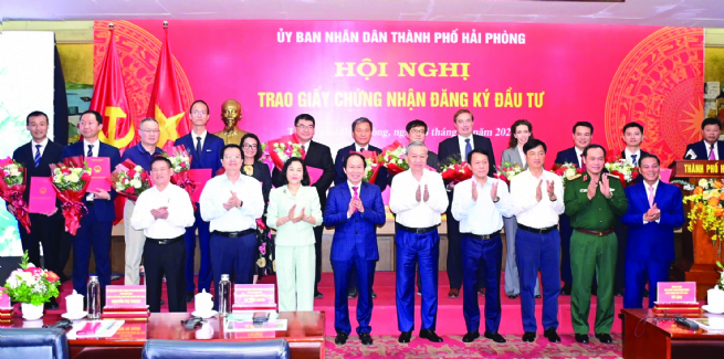 Tổng Bí thư Tô Lâm cùng lãnh đạo cơ quan Trung ương và TP.Hải Phòng trao Giấy chứng nhận đăng ký đầu tư cho các doanh nghiệp
