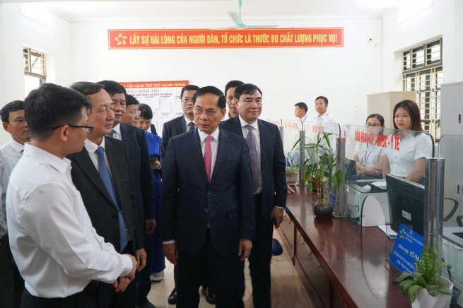 Phó Thủ tướng Chính phủ Bùi Thanh Sơn kiểm tra vận hành hoạt động chính quyền địa phương 2 cấp tại xã Thanh An (Ảnh: Sầm Phúc)