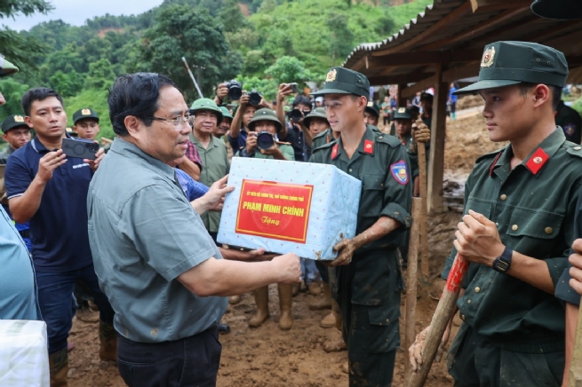 Thủ tướng tặng quà, động viên lực lượng cứu hộ, cứu nạn tại hiện trường lũ quét tỉnh Điện Biên