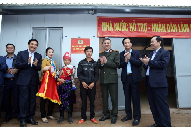 Đại tướng Tô Lâm, UVBCT, Bộ trưởng Bộ Công an trao nhà cho các hộ nghèo tại bản Nậm Pố, xã Mường Nhé