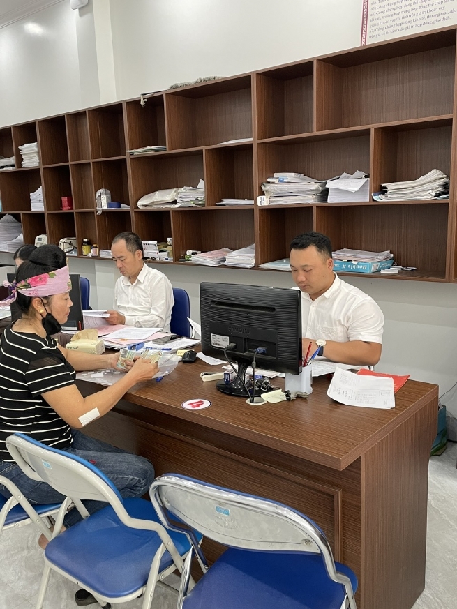 Cán bộ văn phòng tiếp nhận và xử lý hồ sơ cho người dân