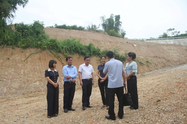 Đảng bộ, chính quyền xã luôn gắn bó, đồng hành cùng doanh nghiệp phát triển. Đứng trên đường kết nối với đường động lực tỉnh Điện Biên (tính từ trái qua phải), chị Trần Thị Hương Quế - Giám đốc HTX Tâm Thiện (đứng thứ 4) ở thôn Văn Tân, xã Thanh An trao đổi về hướng phát triển xây dựng thương hiệu Gạo Điện Biên với Bí thư Đảng ủy xã Lò Hải Dung (đứng thứ 1), Chủ tịch UBND xã Trần Văn Hải (thứ 3)