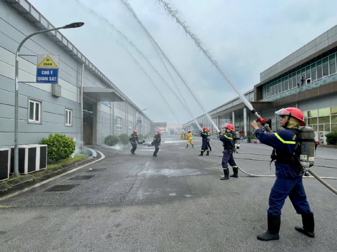 Lực lượng cảnh sát PCCC&CNCH tỉnh Thái Nguyên phối hợp với doanh nghiệp tổ chức thực tập phương án chữa cháy, CNCH tại doanh nghiệp