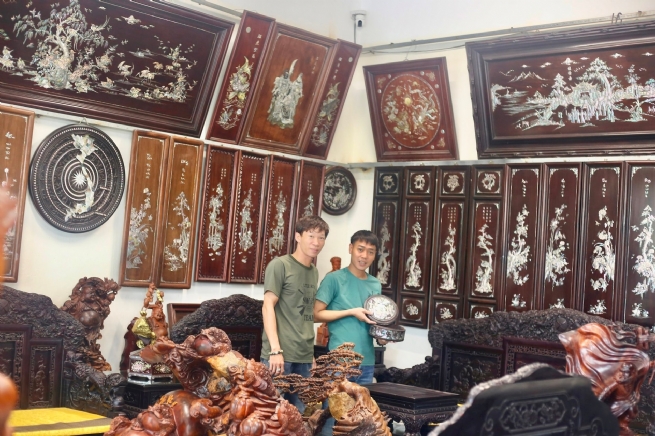 Trong ngôi làng Chuyên Mỹ - nơi được mệnh danh là “đất tổ” của nghề khảm trai truyền thống ở phía Nam Thủ đô, không khó để bắt gặp hình ảnh những nghệ nhân miệt mài bên bàn khảm, tỉ mẩn gắn từng miếng ốc nhỏ, từng mảng trai óng ánh lên bề mặt gỗ. Giữa không gian ấy, cơ sở sản xuất của ông Vũ Văn Đình nổi lên như một điểm sáng của xã nghề. Với các dòng sản phẩm nổi bật như: Hộp đa năng khảm trai, tranh đĩa sơn mài, lọ lục bình gỗ chạm khảm tinh xảo, cơ sở của ông đã tạo dựng được chỗ đứng vững chắc trong lòng người tiêu dùng, nhất là các sản phẩm quà tặng, đồ lưu niệm cao cấp. Điểm nổi bật là chất liệu khảm trai, ốc đều được tuyển chọn kỹ lưỡng, nhập khẩu từ Singapore, Ấn Độ,…