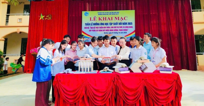 Cùng với phát triển kinh tế, xã Nà Hỳ cũng tập trung cho công tác y tế, giáo dục, an sinh xã hội… Trong ảnh: Trường THPT Nà Hỳ tổ chức Tuần lễ hưởng ứng học tập suốt đời năm 2025