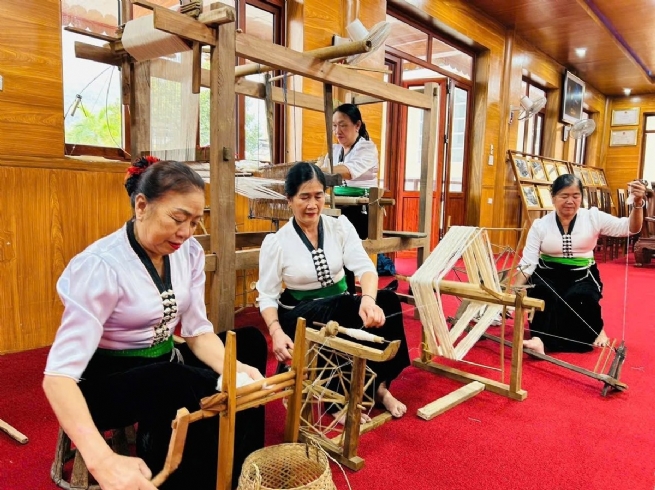 Phụ nữ dân tộc Thái ở Điện Biên dệt vải thổ cẩm, góp phần bảo tồn nghề truyền thống và phát triển du lịch cộng đồng