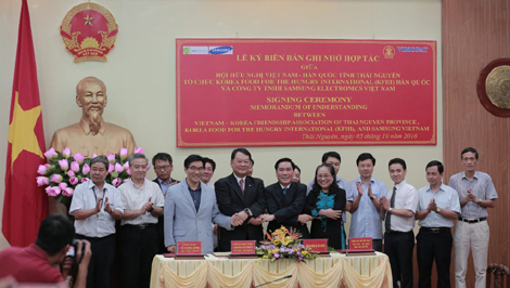 Bên cạnh đó năm 2016,Hội Hữu nghị Việt Nam Hàn Quốc tỉnh Thái Nguyên (VIKOFAT) và Tổ chức Korea Food for the Hungry International (KFHI) dưới sự hỗ trợ của Samsung Việt Nam vừa tổ chức Lễ kí kết Biên bản ghi nhớ về việc thành lập Trung tâm Hợp tác Việt Hàn tỉnh Thái Nguyên (VCC). Trung tâm Hợp tác sẽ triển khai các dự án giúp đỡ người dân trên địa bàn tỉnh Thái Nguyên, đặc biệt tập trung hỗ trợ các trẻ em học sinh có hoàn cảnh khó khăn, tạo ra môi trường học tập và phát triển phù hợp với tình hình kinh tế - văn hóa của tỉnh. Đặc biệt, Trung tâm sẽ đóng vai trò chính để xây dựng và triển khai dự án “Trường học Hy vọng Samsung” (Samsung Hope School) với mục tiêu đem đến các hoạt động phát triển toàn diện cho trẻ em tỉnh Thái Nguyên.