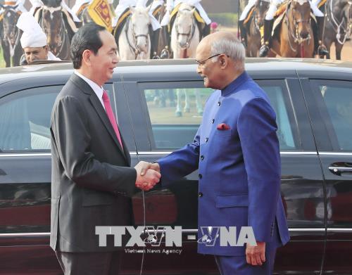 Nhận lời mời của Tổng thống nước Cộng hòa Ấn Độ Ram Nath Kovind, sáng 2/3, Chủ tịch nước Trần Đại Quang và Phu nhân, cùng đoàn đại biểu cấp cao Việt Nam đã đi thăm cấp Nhà nước tới Cộng hòa Ấn Độ từ ngày 2-4/3.
