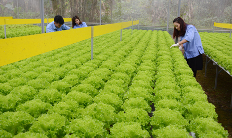 Thành phố cũng đẩy mạnh tái cơ cấu nông nghiệp thực hiện có hiệu quả Đề án sản xuất rau an toàn; tập trung công tác thu hút đầu tư xây dựng phát triển cụm công nghiệp Đầm Hồng, Âu Lâu; đồng thời tiếp tục chỉ đạo duy trì và mở rộng diện tích sản xuất rau an toàn ở 3 xã Âu Lâu, Văn Phú, Tuy Lộc với tổng kinh phí hỗ trợ 200 triệu đồng. Với những hỗ trợ từ thành phố, Âu Lâu là một trong 3 xã đã duy trì và phát triển khá tốt mô hình trồng rau an toàn bằng việc thành lập thêm Tổ hợp tác Sản xuất rau an toàn thôn Đầm Vông với diện tích 1,4 ha. Để đáp ứng nhu cầu thị trường, xã Âu Lâu đã gộp 2 tổ hợp tác thôn Đồng Đình và Đầm Vông để thành lập Hợp tác xã (HTX) Sản xuất rau an toàn xã Âu Lâu. Không chỉ ở xã Âu Lâu mà cả Tuy Lộc, Văn Phú cũng đang tiếp tục duy trì, mở rộng diện tích rau an toàn. Hiện nay, tổng diện tích được chứng nhận cơ sở đủ điều kiện an toàn thực phẩm của 3 xã là 10,08 ha/109 hộ tham gia; tổng diện tích gieo trồng rau an toàn của 3 xã là 10,27 ha/3 vụ, sản lượng ước đạt 270 tấn. Với giá bán trung bình cả năm đạt 7.000 đồng/kg, nhiều hộ dân trồng rau đã vươn lên làm giàu ổn định cuộc sống; tập quán canh tác cũng chuyển dần từ sản xuất tự cung, tự cấp sang sản xuất hàng hóa và thị trường.