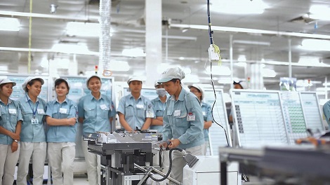 Công nhân thử nghiệm thiết bị mới tại Công ty Panasonic System Networks Việt Nam
