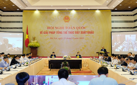 Sáng 23/4 tại Hà Nội, Thủ tướng Chính phủ Nguyễn Xuân Phúc chủ trì Hội nghị tìm giải pháp tổng thể thúc đẩy xuất khẩu trong thời gian tới.