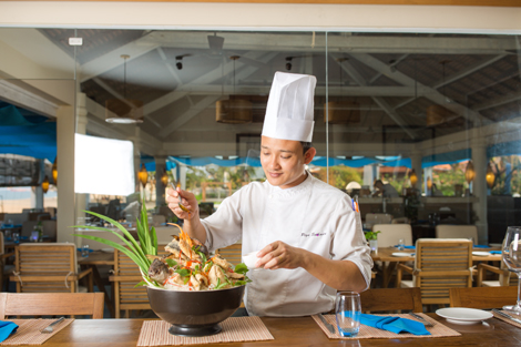 Ngoài phục vụ khách hàng các món ăn phương Tây và Việt Nam, đầu bếp đến từ Thái Lan Khun Piya của chúng tôi đã bổ sung vào bộ sưu tập các món đặc sản và thực đơn Thái đa dạng. Như tất cả khách sạn và khu nghỉ dưỡng trong tập đoàn Six Senses, ẩm thực lành mạnh là giá trị cốt lõi trong nguyên tắc chỉ đạo của chúng tôi, tập trung vào các nguyên liệu tự nhiên và địa phương được chọn lọc kĩ lưỡng.