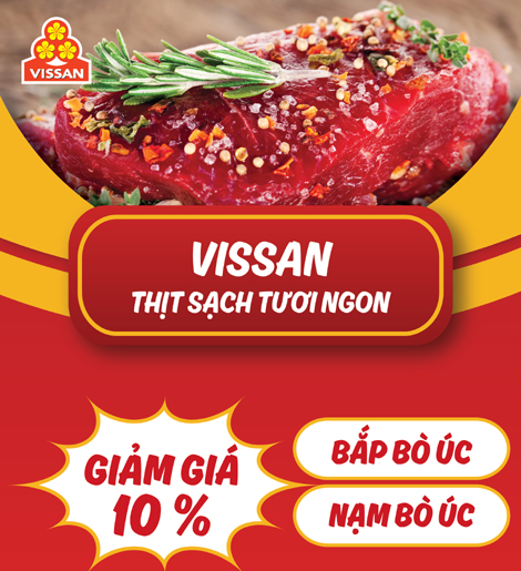 Ngoài ra, VISSAN triển khai chương trình khuyến mãi 10% đối với 2 mặt hàng thịt bò Úc là Bắp bò Úc và Nạm bò Úc.
