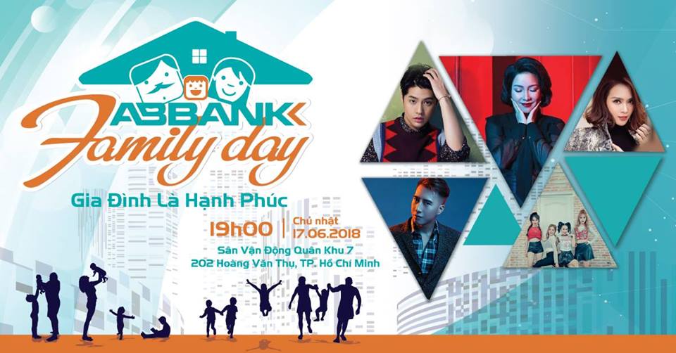 Ngày hội ABBANK Family Day – Gia đình là hạnh phúc được tổ chức trên quy mô lớn tại Sân vận động Quân khu 7 (TP.HCM) ngày 17/06/2018 và Công viên Thống Nhất (Hà Nội) ngày 24/06/2018. Chương trình được xây dựng xuyên suốt từ sáng tới tối, với nhiều hoạt động dành cho cả gia đình: game vận động, khu vực vui chơi của bé, khu trải nghiệm sản phẩm công nghệ, khu vực nghỉ ngơi mát mẻ cho cả nhà… rất phù hợp để các gia đình tại TP.HCM, Hà Nội và các tỉnh lân cận tập trung về dự.