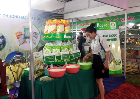 Với thế mạnh và kinh nghiệm dày dặn trong hoạt động Thương mại nội địa, Tổng công ty Thương mại Hà Nội (Hapro) tham gia 2 gian hàng trưng bày tại Hội chợ với sản phẩm Rượu Vang Thăng Long của Công ty CP Vang Thăng Long – doanh nghiệp hàng đầu của Việt Nam về sản xuất và phân phối các sản phẩm rượu vang với tiêu chí “Sản xuất thương hiệu rượu chất lượng đẳng cấp- góp phần xây dựng văn hóa sử dụng rượu vang tại Việt Nam” và sản phẩm nông sản Gạo Đồng Tháp, với 3 loại gạo: Japonica, Hương lài sữa dẻo và Hương chín rồng. Gạo Đồng Tháp có vị thoảng thơm, mềm dẻo tạo cảm giác ngon miệng khi ăn. Hiện sản phẩm đã được phân phối, bán buôn và bán lẻ tại Hệ thống Hapromart, Haprofood của Tổng công ty tại khu vực Hà Nội và một số tỉnh phía Bắc được người tiêu dùng thủ đô tin tưởng và đón nhận.
