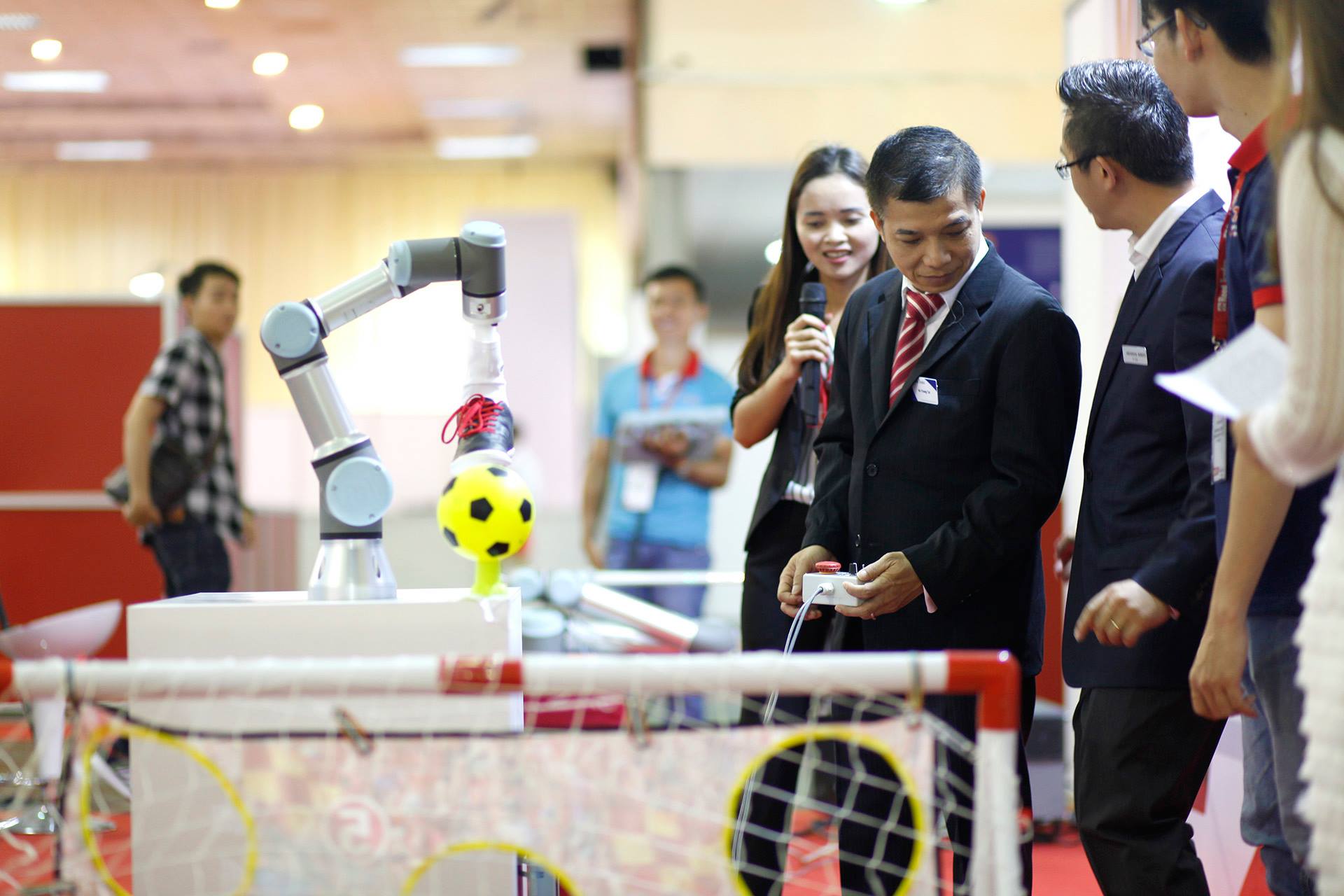 Tại “Vietnam Manufacturing Expo 2018”, Universal Robots là một trong số những doanh nghiệp dẫn đầu, thành công trong việc tạo ra Robot cộng tác (Cobot) thương mại đầu tiên trên thế giới. Năm nay, Universal Robots tham gia triển lãm với mục tiêu giới thiệu robot đồng hành, hoạt động như một công cụ hỗ trợ thông minh cho các công nhân tại nhà máy. Bà Shermine Gotfredsen, Tổng Giám đốc của Universal Robots tại Đông Nam Á và Châu Đại Dương, chia sẻ về vai trò của Cobot trong kỷ nguyên Công nghiệp 4.0 rằng "Robot hợp tác được thiết kế để cộng tác với con người. Ngoài khả năng sẵn có trong việc tương thích với ngành công nghiệp 4.0, robot hợp tác đã đóng một vai trò quan trọng trong việc cho phép các công ty vừa và nhỏ, với tiềm lực kinh tế chưa cao, có thể bắt đầu áp dụng tự động hoá quy trình sản xuất. Những robot này rất linh hoạt, dễ lập trình, nhỏ, nhẹ và giá cả không quá cao, dễ dàng được áp dụng, triển khai từng phần tại các doanh nghiệp SMEs, cũng như các nhà máy sản xuất cũ, hiện chưa đủ khả năng để đồng bộ hoá hệ thống robot công nghiệp tự động hoá. Các robot được “dân chủ hóa” theo cách này có thể hỗ trợ các công ty ở khắp mọi nơi tham gia vào làn sóng tự động hóa.”