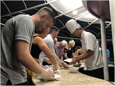 Sau khi thăm làng chài Vung Viêng, những con tàu 3-5 sao sẽ đưa du khách đến những điểm ngủ nằm nấp sau những dãy núi. Trên top view các du khách Âu Châu sẽ được bếp trưởng hướng dẫn làm những món nem - một món ăn truyền thống Việt Nam mà người nước ngoài rất thích thú khi thưởng thức “Được tự tay làm những món ăn truyền thống Việt Nam và thưởng thức chúng ngay tại chỗ, thật là một trải nghiệm tuyệt vời”- John Adamn lần đầu tiên đến Việt Nam tham gia vào buổi dạy nấu ăn trên tàu đã cảm thán lên như vậy ngay sau khi nếm sản phẩm đầu tay của mình.