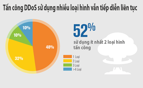 - 52% số vụ tấn công DDoS được giảm nhẹ bởi Verisign trong Q2 2018 sử dụng nhiều loại hình tấn công.
