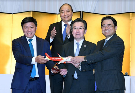 Ngày 10/10/2018, trong khuôn khổ chuyến thăm chính thức của Thủ tướng Việt Nam Nguyễn Xuân Phúc đến Nhật Bản, hôm nay ở Tokyo, Vietjet đã đồng loạt khai trương thương mại 3 đường bay từ Việt Nam đến Nhật Bản, góp phần tăng trưởng du lịch, kinh tế và giao thương giữa hai nước và trong khu vực. Sự kiện diễn ra trang trọng với sự chứng kiến của Thủ tướng Chính phủ Việt Nam Nguyễn Xuân Phúc và đại diện lãnh đạo cấp cao của Chính phủ Nhật Bản và Việt Nam.