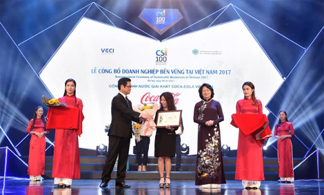 Với những hoạt động thiết thực thể hiện tốt sự gắn kết bền vững với sự phát triển chung của đất nước, Bảng xếp hạng doanh nghiệp phát triển bền vững Việt Nam năm 2017 đã vinh danh Coca-Cola thuộc Top 5 doanh nghiệp bền vững lĩnh vực sản xuất.
