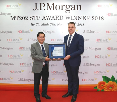 Tiếp nối những giải thưởng uy tín trong và ngoài nước, mới đây, HDBank tiếp tục được Ngân hàng J.P Morgan Chase trao tặng Giải MT202 STP Award, ghi nhận tỷ lệ xử lý điện thanh toán quốc tế của HDBank đạt chuẩn xuất sắc toàn cầu.