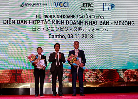 Chủ tịch VCCI - TS Vũ Tiến Lộc đã trao tặng Kỷ niệm chương “Vì sự nghiệp phát triển doanh nghiệp” cho Chủ tịch UBND TP Cần Thơ Võ Thành Thống và ông Noboru Kondo - Chủ tịch Tập đoàn Brain Works vì có nhiều thành tích trong hỗ trợ phát triển doanh nghiệp, kết nối doanh nghiệp Việt Nam-Nhật Bản.