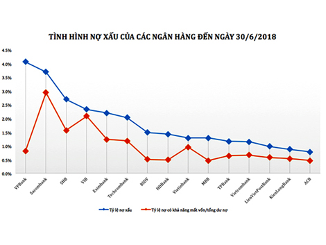 Tình hình nợ xấu của các ngân hàng đến ngày 30/6/2018.