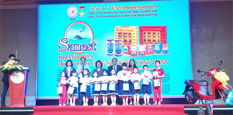 Cũng tại buổi lễ trao giải, nhằm thể hiện tinh thần vì cộng đồng và trách nhiệm đối với xã hội, khích lệ động viên, giúp đỡ các em học sinh có thêm động lực phấn đấu trong học tập. Công ty Cổ phần Nước Giải khát Sanest Khánh Hòa và Công ty Cổ phần Nước Giải khát Yến sào Khánh Hòa đã trao tặng 10 phần quà hỗ trợ cho 10 cháu học sinh giỏi có hoàn cảnh khó khăn tại Trường Tiểu học Hoàng Diệu, Phường 14, Quận 10, TP.Hồ Chí Minh; mỗi phần quà trị giá 1 triệu đồng cùng sản phẩm Sanest Khánh Hòa với mong muốn được góp phần cùng chính quyền địa phương nâng cao cuộc sống cho người dân, đảm bảo an sinh xã hội.