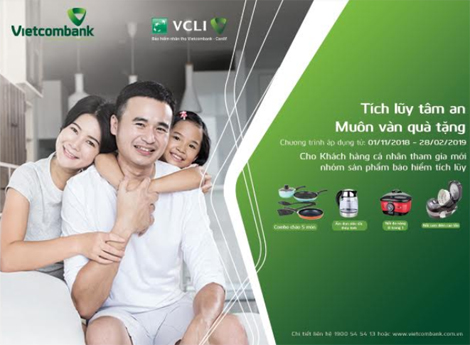 Từ ngày 01/11/2018 – 28/02/2019, Ngân hàng TMCP Ngoại thương Việt Nam (Vietcombank) phối hợp cùng với Công ty Bảo hiểm nhân thọ Vietcombank – Cardif (VCLI) triển khai chương trình khuyến mại tri ân khách hàng “Tích lũy tâm an, muôn vàn quà tặng”.