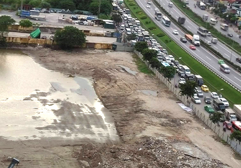 Khu vực xây Bến xe Yên Sở tại đường vành đai 3, tuyến đường thường xuyên ùn tắc giao thông. Ảnh: VnExpress