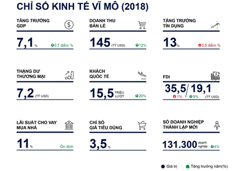 Kim ngạch xuất khẩu năm 2018 vượt mức 244 tỷ USD, thặng dư thương mại đạt 7,2 tỷ USD. Các doanh nghiệp có vốn đầu tư nước ngoài (FDI) đóng góp hơn 70% giá trị xuất khẩu, Hoa Kì vẫn là thị trường lớn nhất.