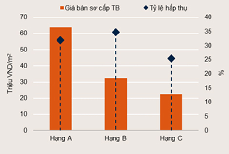 Số lượng giao dịch tăng 81% theo quý và 69% theo năm, trong khi tỷ lệ hấp thụ tăng 9 điểm % theo quý và 5 điểm % theo năm đạt 34%. Giá chào bán trung bình đạt 1.370 USD/m², tăng 3% theo quý và 10% theo năm. Hạng B chiếm 61% thị phần, theo sau là Hạng C với 31%.