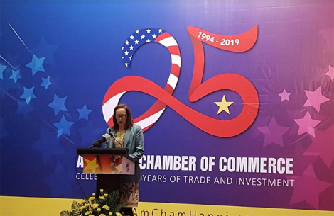 Ngày 18/01, Đại biện lâm thời Đại sứ quán Hoa Kỳ tại Việt Nam, Caryn McClelland đã có bài phát biểu tại tiệc trưa do Phòng Thương mại Hoa Kỳ tổ chức nhân kỷ niệm 25 năm ngày Tổng thống Bill Clinton dỡ bỏ lệnh cấm vận thương mại của Hoa Kỳ đối với Việt Nam.