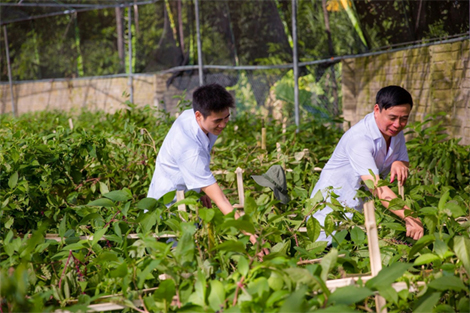 Lương y Đỗ Đức Tĩnh cùng con trai chăm sóc vườn thuốc Đại Phú An