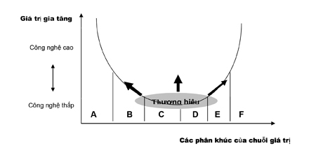 Có thể thấy thương hiệu chi phối mạnh mẽ tất cả các phân khúc giá trị của sản phẩm. Tuy nhiên, sự chi phối đó mạnh hơn ở các phân khúc A, B, E, F. Chính vì vậy, với bối cảnh chuỗi giá trị sản phẩm đã kéo dài và mở rộng khắp toàn cầu trong quá trình hội nhập thì các công ty đa quốc gia có xu hướng thuê lại (outsourcing) các phân khúc C và D cho các nước đang phát triển. Và đây cũng là cơ hội cho các nước đang phát triển có thể thu hút đầu tư, phát triển đối tác nhằm nâng cao trình độ sản xuất kinh doanh trong chiến lược ngắn hạn và trung hạn. Điều này cũng giải thích tại sao thế giới ngày nay vừa cạnh tranh vừa hợp tác. Mặc dù vậy, trong chiến lược dài hạn, các nước đang phát triển và các doanh nghiệp cũng cần thiết phát triển và mở rộng tham gia vào các phân khúc A, B, E, F nhằm nâng cao hiệu quả. Hơn nữa, cần phải đột phá trong phân khúc E – marketing (giá cả, bán hàng…) thông qua việc phát triển thương hiệu sản phẩm, dịch vụ của mình.