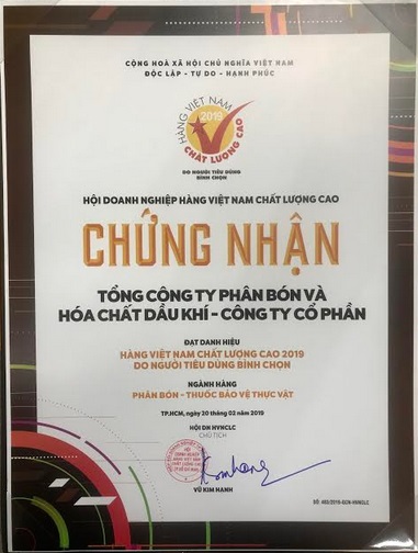 Vừa qua, Tổng Công ty Phân bón và Hóa chất Dầu khí (PVFCCo – mã chứng khoán DPM đã vinh dự được trao tặng danh hiệu Hàng Việt Nam chất lượng cao (HVNCLC) do người tiêu dùng bình chọn.