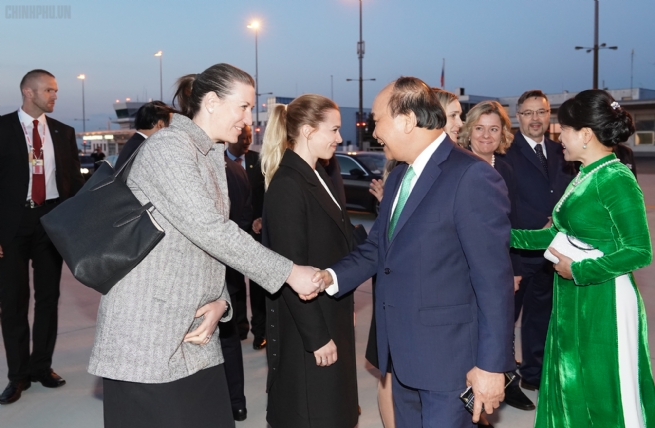 Lễ tiễn Thủ tướng Nguyễn Xuân Phúc và Phu nhân tại sân bay quốc tế Vaclav Havel, Prague. Ảnh: VGP/Quang Hiếu
