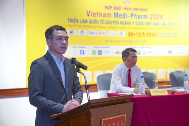 Phát biểu tại buổi họp báo, TS.BS Hà Anh Đức, Chánh Văn phòng Bộ Y tế cho biết, Triển lãm Quốc tế chuyên ngành Y Dược Việt Nam - VIETNAM MEDI-PHARM tổ chức định kỳ vào tháng 5/2024 tại Hà Nội từ năm 1994, là một triển lãm thường niên chuyên ngành uy tín, thu hút được sự quan tâm của đông đảo các anh chị đồng nghiệp, giới chuyên môn, tổ chức, doanh nghiệp; mỗi kỳ triển lãm thu hút hàng vạn lượt khách trong nước và quốc tế tới thăm quan, trao đổi kinh nghiệm và hợp tác kinh doanh.