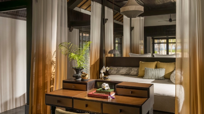 Nội thất ở các căn biệt thự tại Four Seasons The Nam Hải, Hội An thể hiện sự hòa quyện tinh tế giữa kiến trúc nhà vườn truyền thống Việt Nam và phong cách đương đại – tất cả mọi chi tiết đều được chăm chút tỉ mỉ để mang đến cảm giác thư thái và thanh nhã