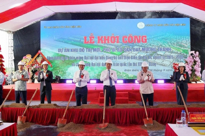 Bên cạnh công tác xúc tiến, thu hút đầu tư, tỉnh Điện Biên cũng chú trọng hỗ trợ các nhà đầu tư triển khai dự án. Trong ảnh: khởi công Dự án Khu đô thị mới, phố đi bộ sân bay Mường Thanh