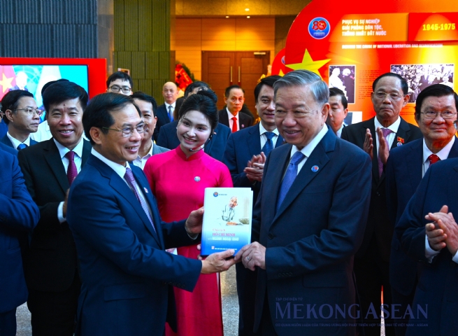 Phó Thủ tướng, Bộ trưởng Ngoại giao Bùi Thanh Sơn tặng Tổng Bí thư Tô Lâm cuốn sách “Chủ tịch Hồ Chí Minh với ngành Ngoại giao”