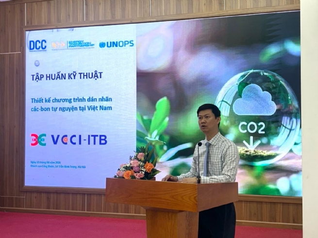 Vừa qua, tại Hà Nội, trong khuôn khổ Hỗ trợ Kỹ thuật nhằm Thiết kế và Thí điểm Chương trình Dán Nhãn Carbon Tự Nguyện tại Việt Nam, do Chương trình Đối tác Chuyển dịch Năng lượng Đông Nam Á (ETP), Văn phòng Dịch vụ Dự án Liên Hợp Quốc (UNOPS) phối hợp cùng Cục Biến đổi khí hậu - Bộ Nông nghiệp và Môi trường (DCC) thực hiện, VCCI phối hợp với Công ty Cổ phần RCEE đã tổ chức thành công khoá tập huấn kỹ thuật: Phương pháp tính toán dấu chân carbon và triển khai nhãn carbon cho doanh nghiệp. Sự kiện là một bước đi chiến lược nhằm hỗ trợ cộng đồng doanh nghiệp nội địa thích ứng với các quy định khắt khe của thị trường toàn cầu và hiện thực hóa cam kết Net Zero của Chính phủ.