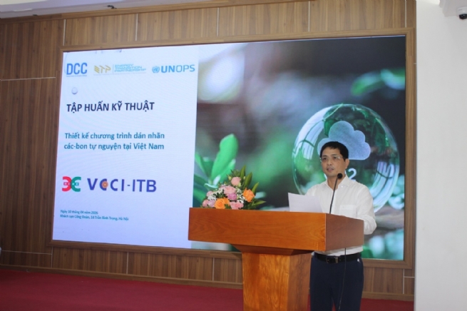 Ông Nguyễn Hùng Minh – Phó trưởng phòng, Phòng thị trường các-bon, Cục biến đổi khí hậu, Bộ NN&MT phát biểu tại chương trình tập huấn kỹ thuật