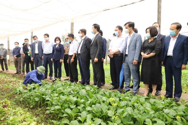 Phó Bí thư Thường trực Thành ủy, Trưởng ban Chỉ đạo Chương trình số 04-CTr/TU thăm mô hình sản xuất rau an toàn huyện Hoài Đức.