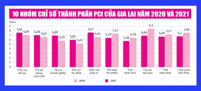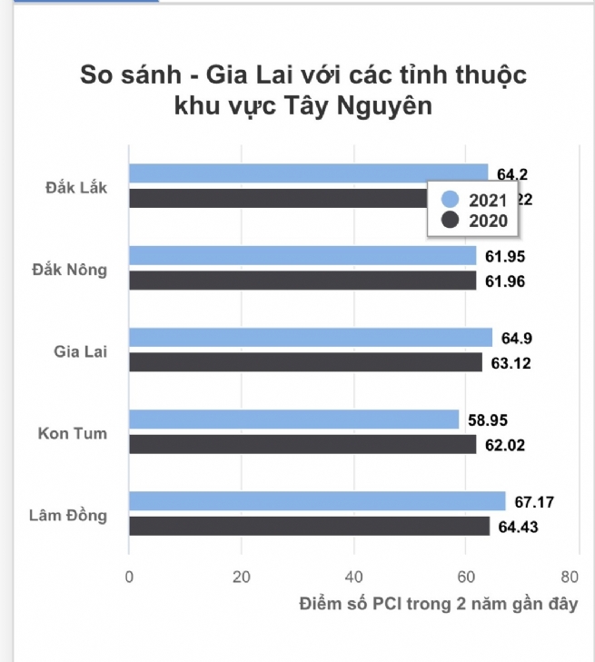 Chỉ số PCI phản ánh khách quan, chính xác, trung thực kết quả đánh giá của cộng đồng doanh nghiệp trong mối quan hệ tương tác với chính quyền địa phương, thể hiện qua 128 thông số và 10 nhóm chỉ số thành phần. Việc Gia Lai - một tỉnh thuộc khu vực Tây Nguyên còn quá nhiều khó khăn, số lượng doanh nghiệp chưa nhiều, tỷ lệ đồng bào dân tộc thiểu số chiếm đến gần 45% dân số, được lọt vào nhóm khá trên bảng xếp hạng PCI là sự nỗ lực rất lớn của cả hệ thống chính trị trong cải cách hành chính, tạo môi trường đầu tư kinh doanh thuận lợi, tạo sự hài lòng trong cộng đồng doanh nghiệp. Cụ thể, năm 2021, Gia Lai có 5 chỉ số thành phần tăng điểm so với năm 2020 gồm: tiếp cận đất đai 7,56 điểm (tăng 0,57 điểm), chi phí không chính thức 6,98 điểm (tăng 0,36 điểm), hỗ trợ doanh nghiệp 6,89 điểm (tăng 1,11 điểm), đào tạo lao động 5,95 điểm (tăng 0,82 điểm), thiết chế pháp lý 7,57 điểm (tăng 1,01 điểm). Với 64,9 điểm, Gia Lai đứng ở vị trí thứ 26 trong bảng xếp hạng PCI toàn quốc năm 2021 (tăng 12 bậc so với năm 2020) và xếp thứ 2 ở khu vực Tây Nguyên. Một điểm cộng đáng tự hào nữa là dù trong năm qua tình hình dịch bệnh còn diễn biến phức tạp, nhưng “dòng chảy cải cách” từ các địa phương vẫn được duy trì, bộ máy chính quyền các tỉnh, thành phố luôn được nêu cao.